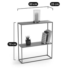 Elevate any room with the elegant HIBA Metal Tier Console Table. Boasting a sleek black finish, this console table is perfect for adding a touch of modern sophistication to your décor. The sturdy metal construction ensures lasting durability, making it a practical and stylish addition to your home.