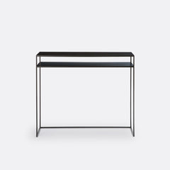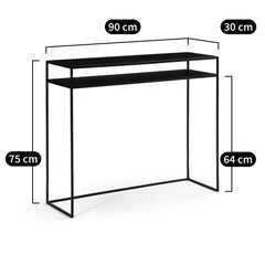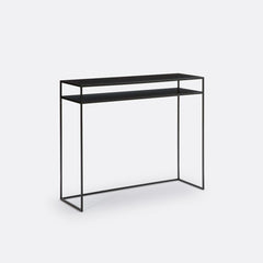 Elevate your space with the INTERIEURS HIBA 2-TIER METAL CONSOLE. This sleek console features two tiers for storage and display, perfect for organizing your home while adding an industrial touch. Crafted with high-quality metal, it offers durability and a modern aesthetic. Upgrade your decor with this stylish and functional piece.