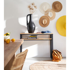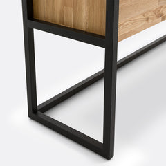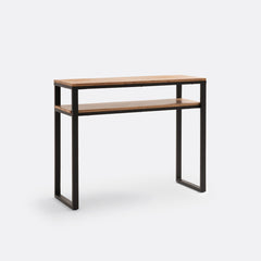 INTERIEURS HIBA TWO-LEVEL SOLID OAK & METAL CONSOLE TABLE