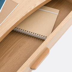 - Organic-shaped top in oak veneered MDF with a nitrocellulose varnish finish
