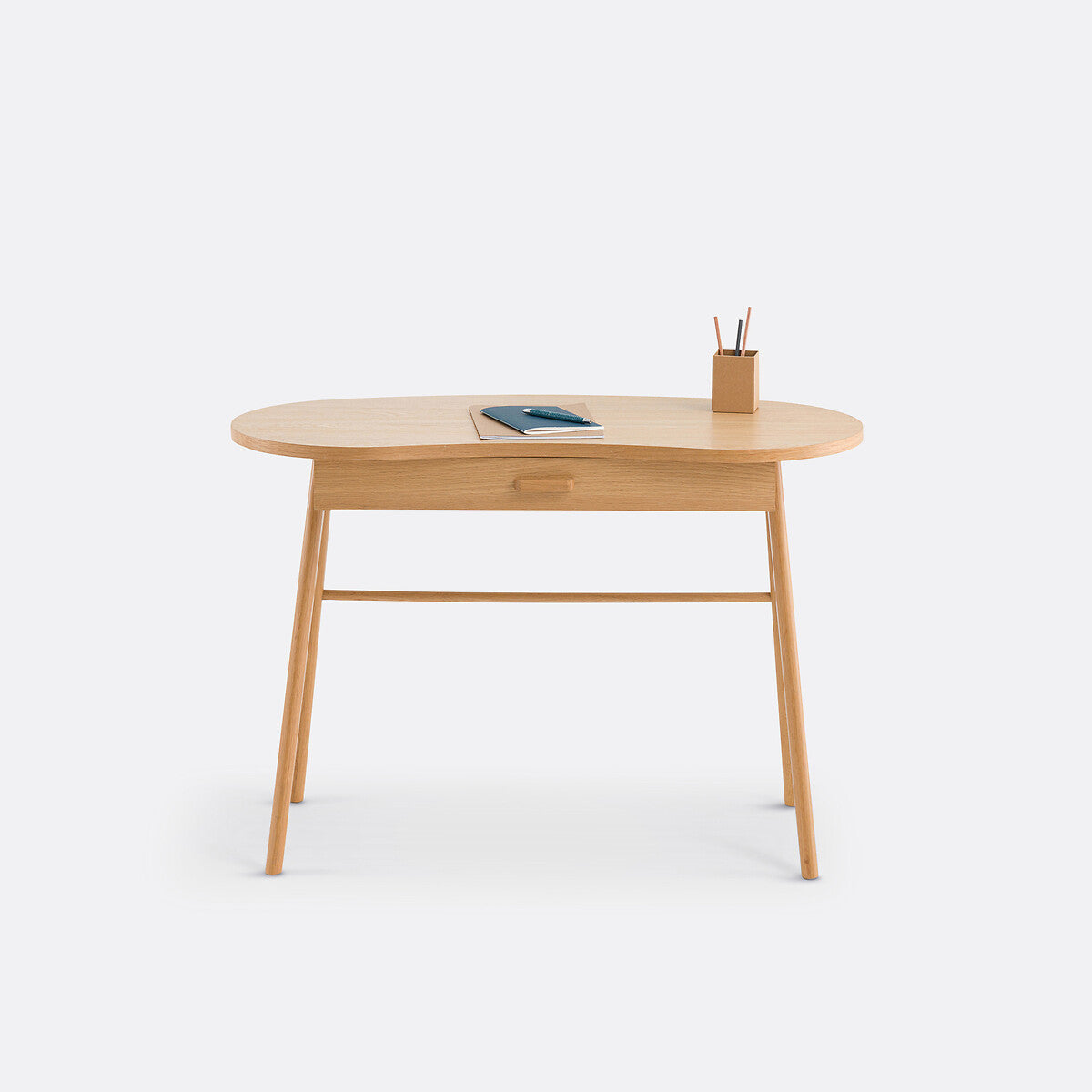 Scandinavian style inspired by 1950s design: this is Anda, the desk with an organic-shaped top and a compass-style base. Clean and contemporary, it allows you to create a functional and aesthetic workspace. Compact, Anda will easily find its place in your bedroom or living room.