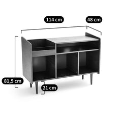 Store your vinyl collection in style with the RONDA WALNUT VENEER VINTAGE VINYL STORAGE. This vintage-inspired storage unit features a beautiful walnut veneer finish, providing a sophisticated touch to any room. Keep your records organized and protected while adding a touch of elegance to your home decor.
