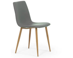 SIENNA GREY FAUX LEATHER DINING CHAIR WOOD LEGS