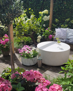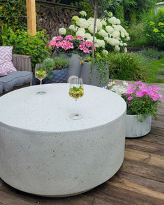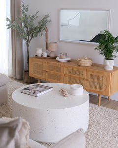 TREZZO ROUND COFFEE TABLE IN OFF - WHITE TERRAZZO EFFECT